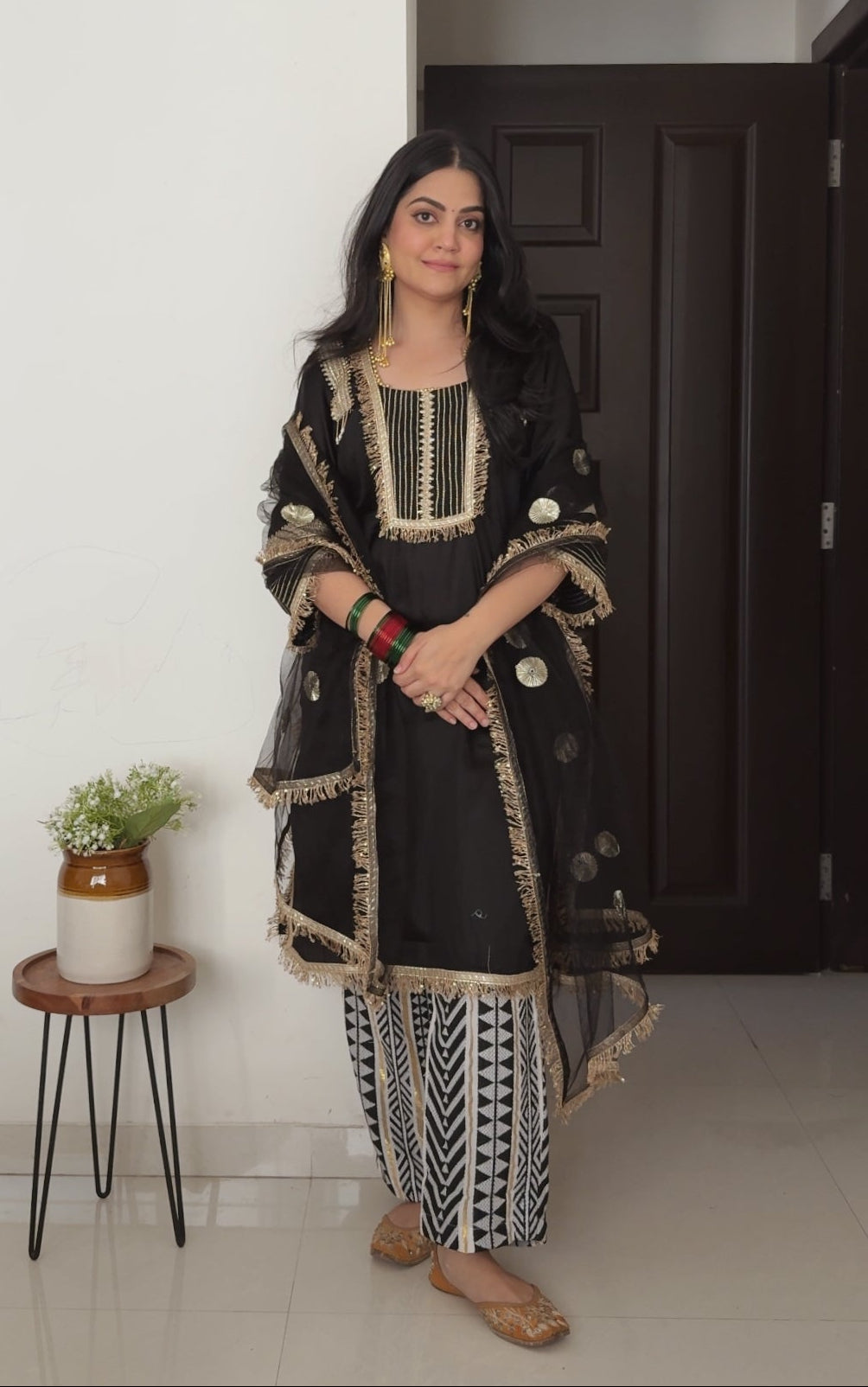 Delivery within 3-7 working days for all over IndiaGracefully crafted in rich black dhabu cotton,...