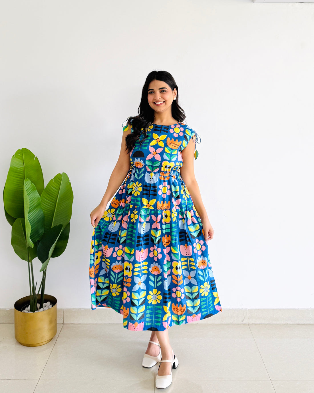 Delivery within 3-7 working days for all over India This vibrant cotton midi dress features...