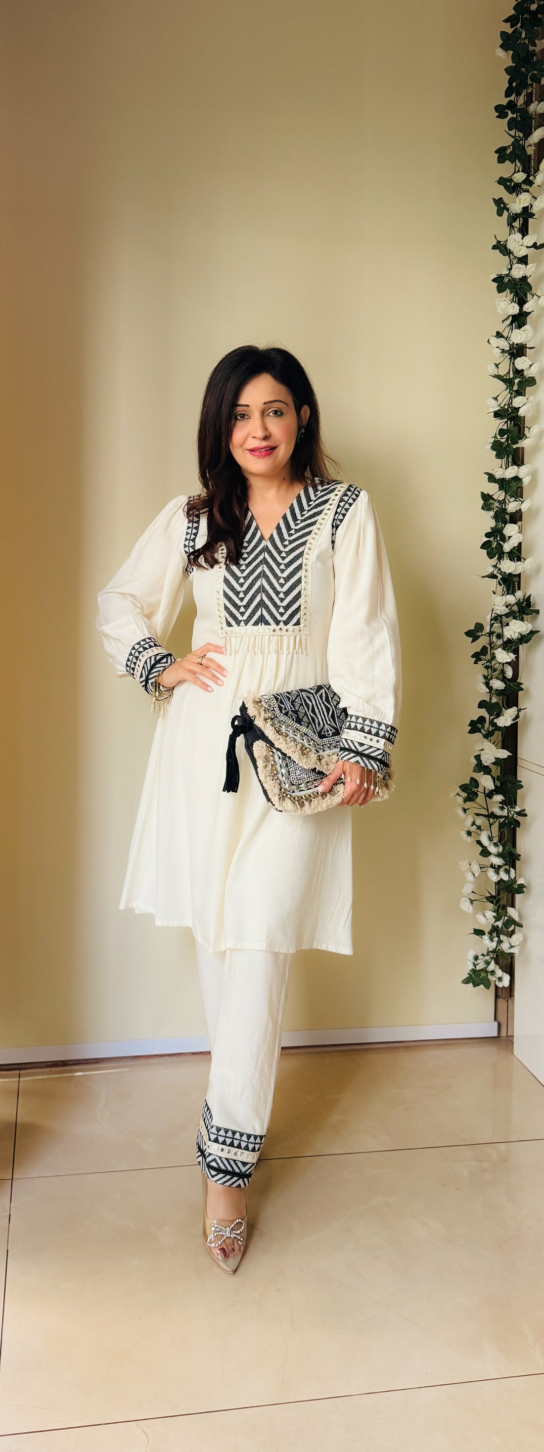 Delivery within 3-7 working days for all over India This elegant ivory kurta set blends...