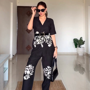 Delivery within 3-7 working days for all over IndiaGracefully crafted in rich black dhabu cotton,...