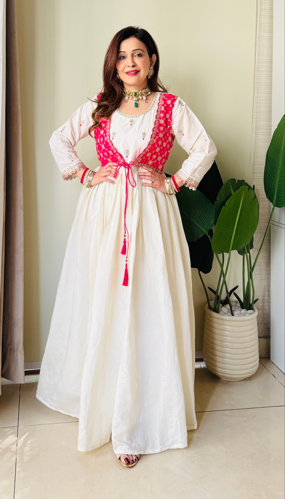Delivery within 3-7 working days for all over India Elegant and timeless, this Chanderi maxi...
