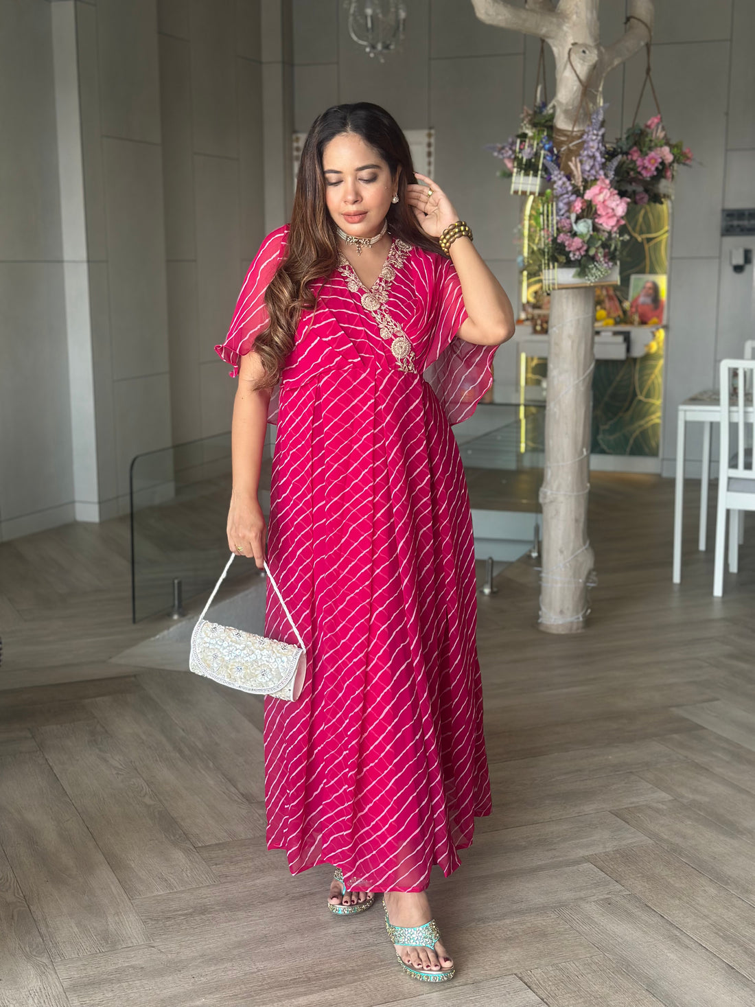 Delivery within 3-7 working days for all over IndiaExude elegance with this Leheriya dress, adorned...