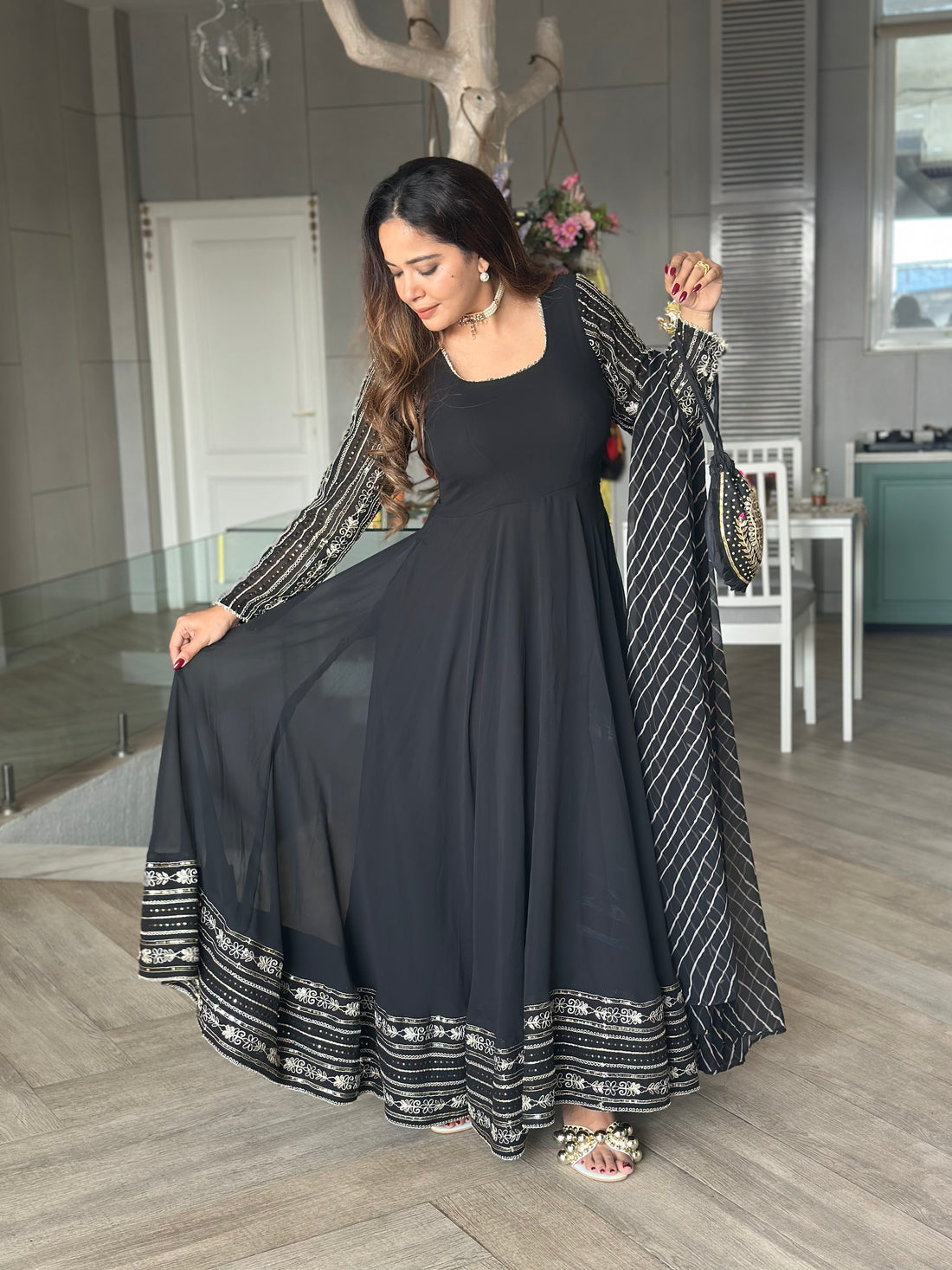 Delivery within 3-7 working days for all over IndiaStep into elegance with this georgette maxi...