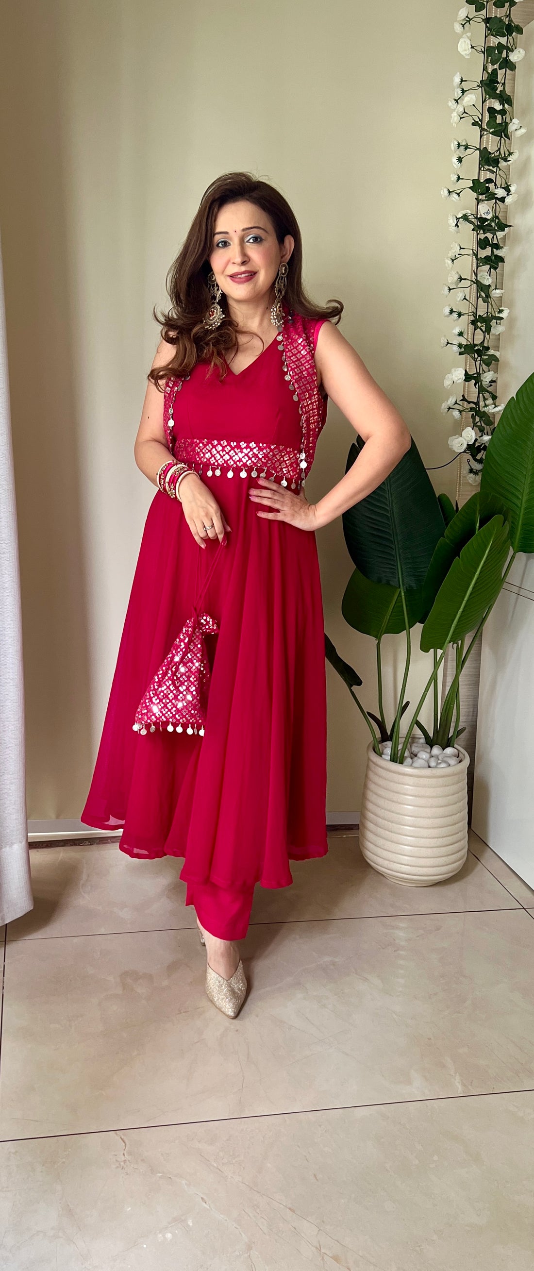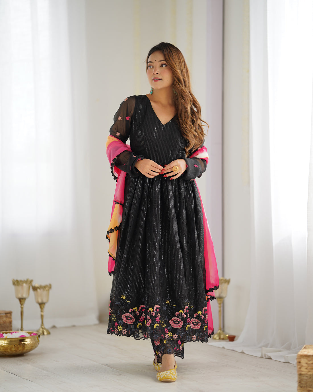 Delivery within 3-7 working days for all over India Presenting the Mirror Glint Georgette Set...