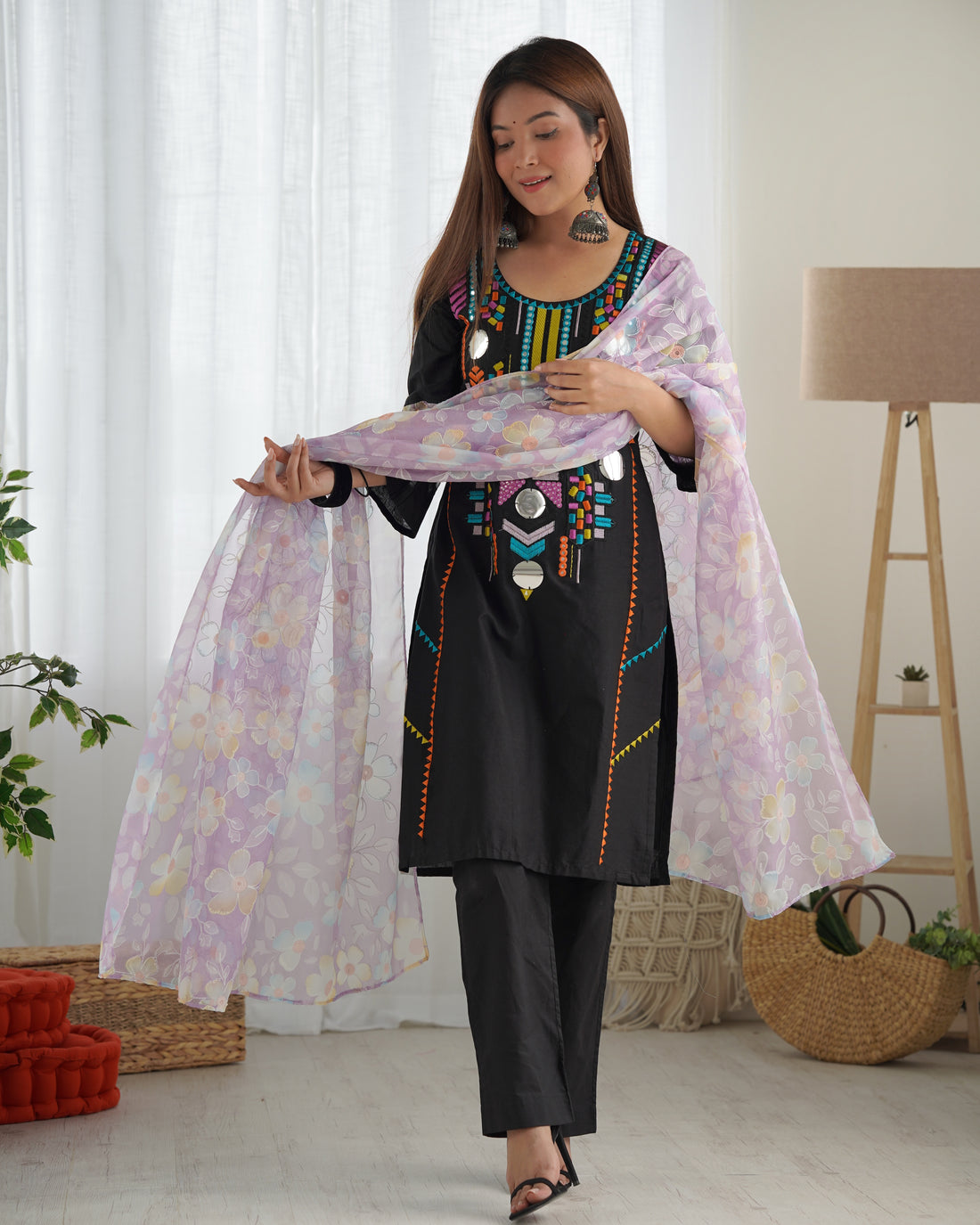 Delivery within 3-7 working days for all over IndiaElegant rayon kurta set featuring intricate embroidery...