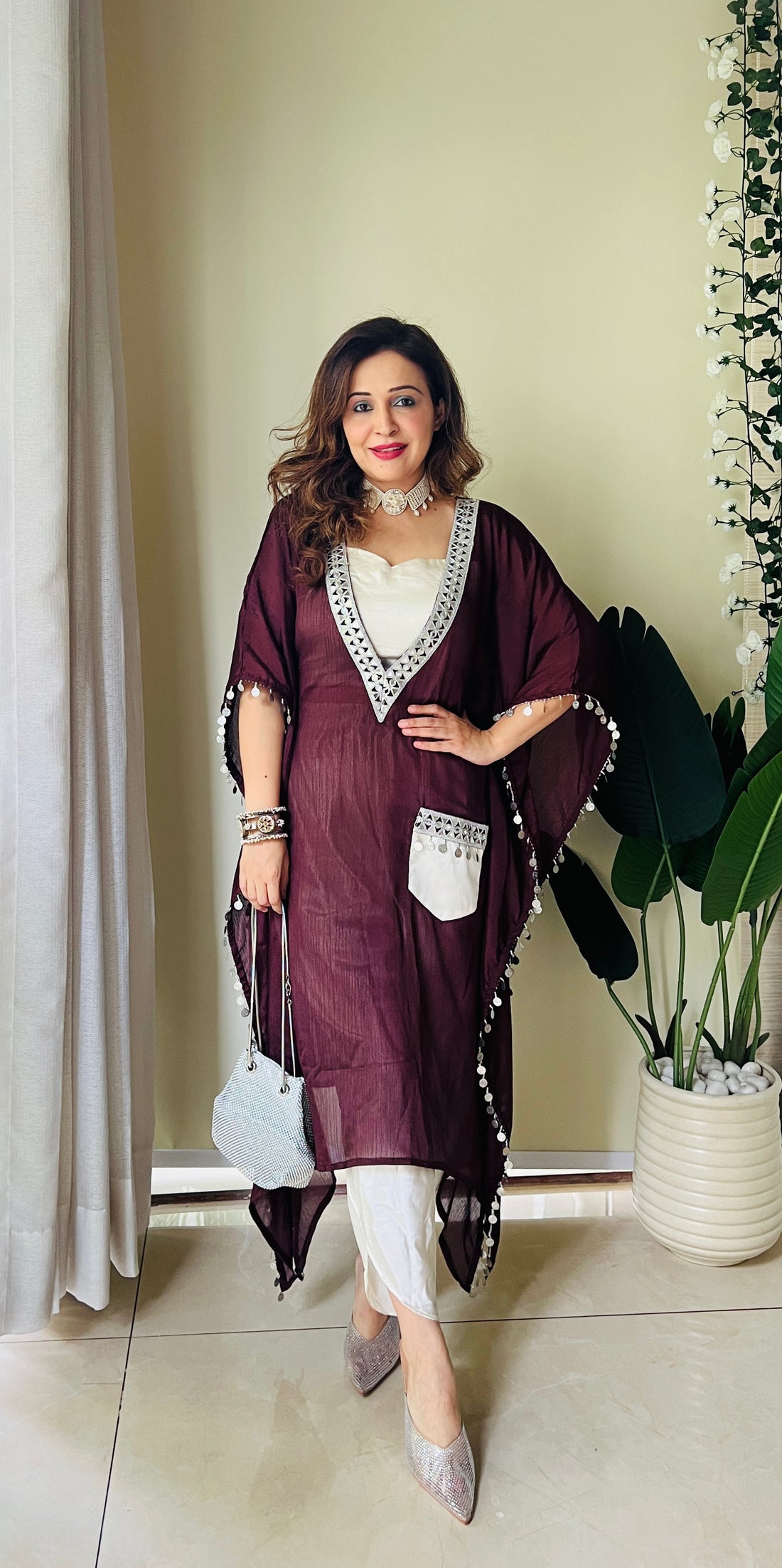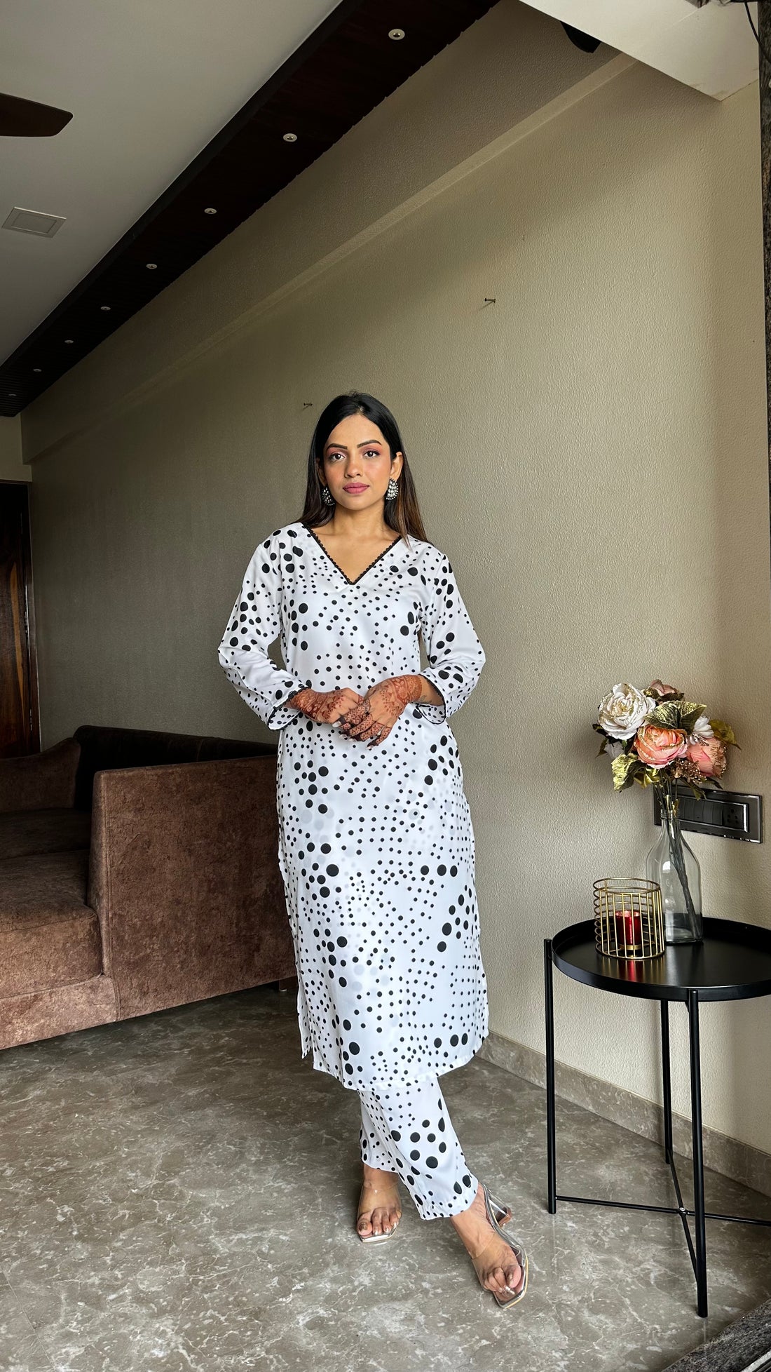 Delivery within 3-7 working days for all over IndiaElevate your style with this chic crepe...