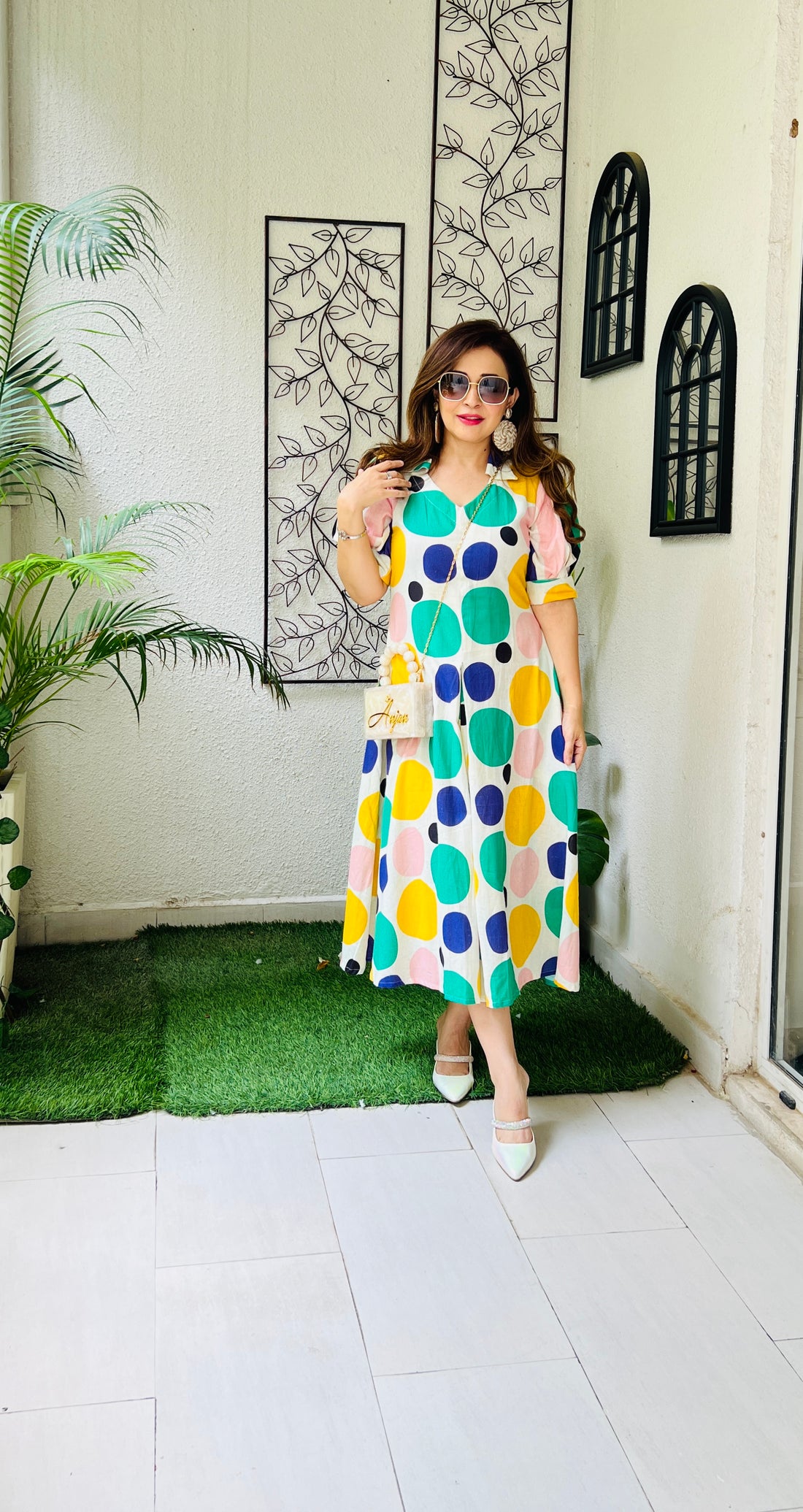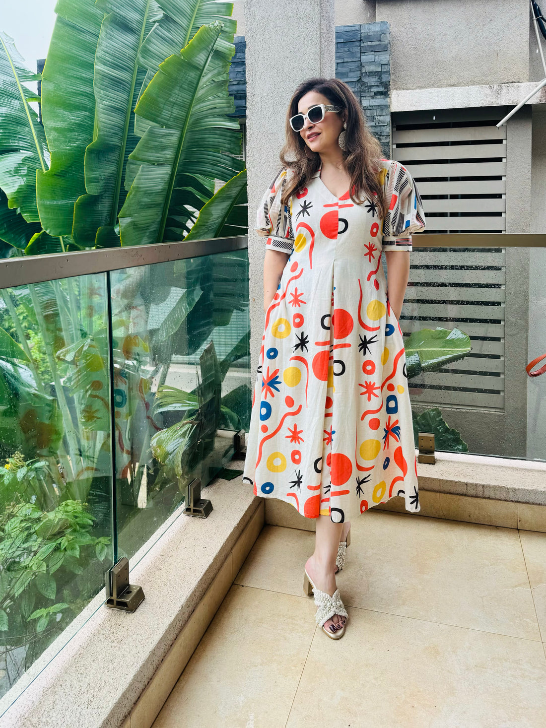 Delivery within 3-7 working days for all over IndiaIntroducing our Quirky Prints Midi Dress: a...