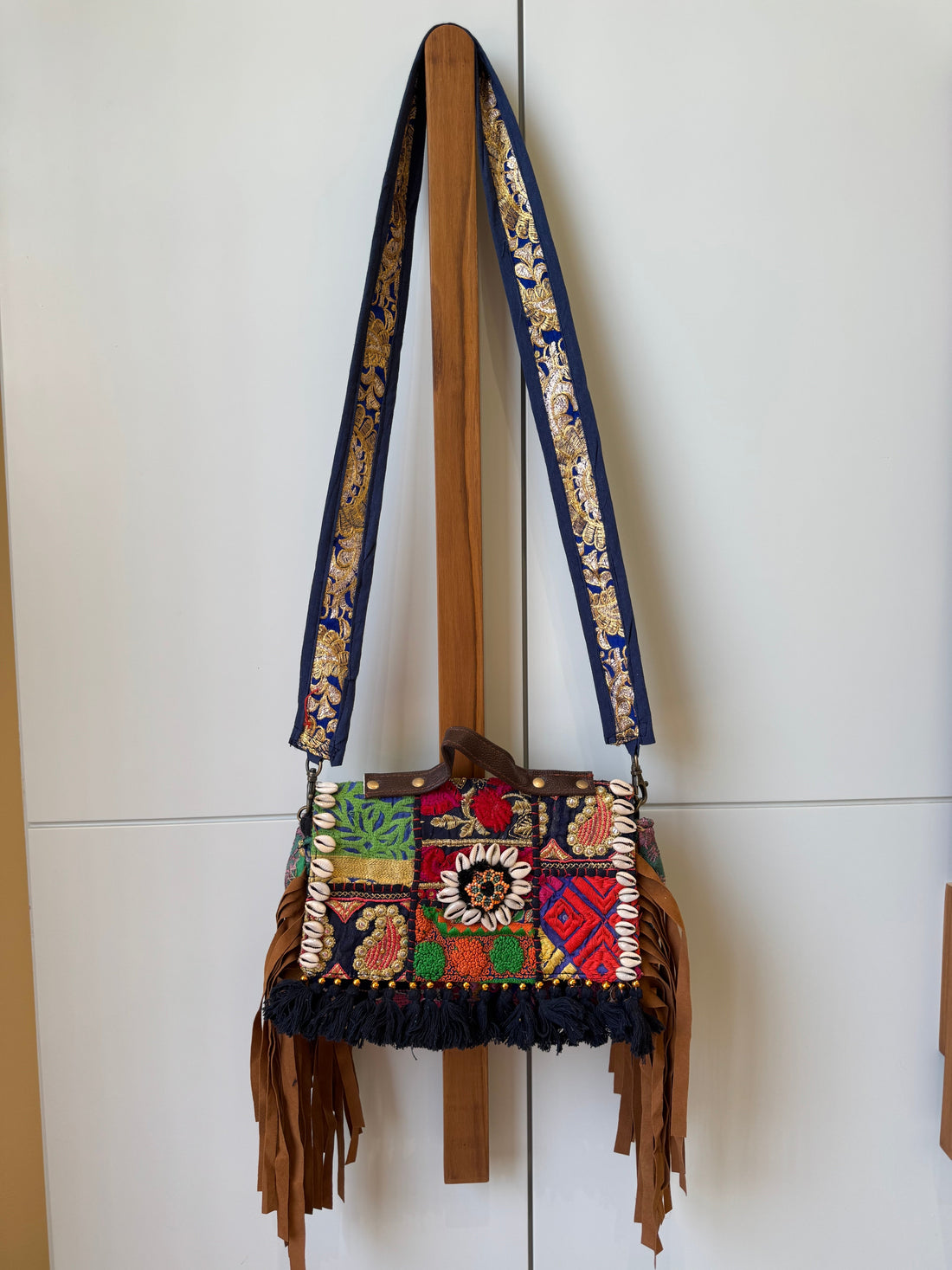 Ethically made with love, this Indian bohemian bag is made with vintage banjara fabric patches,...