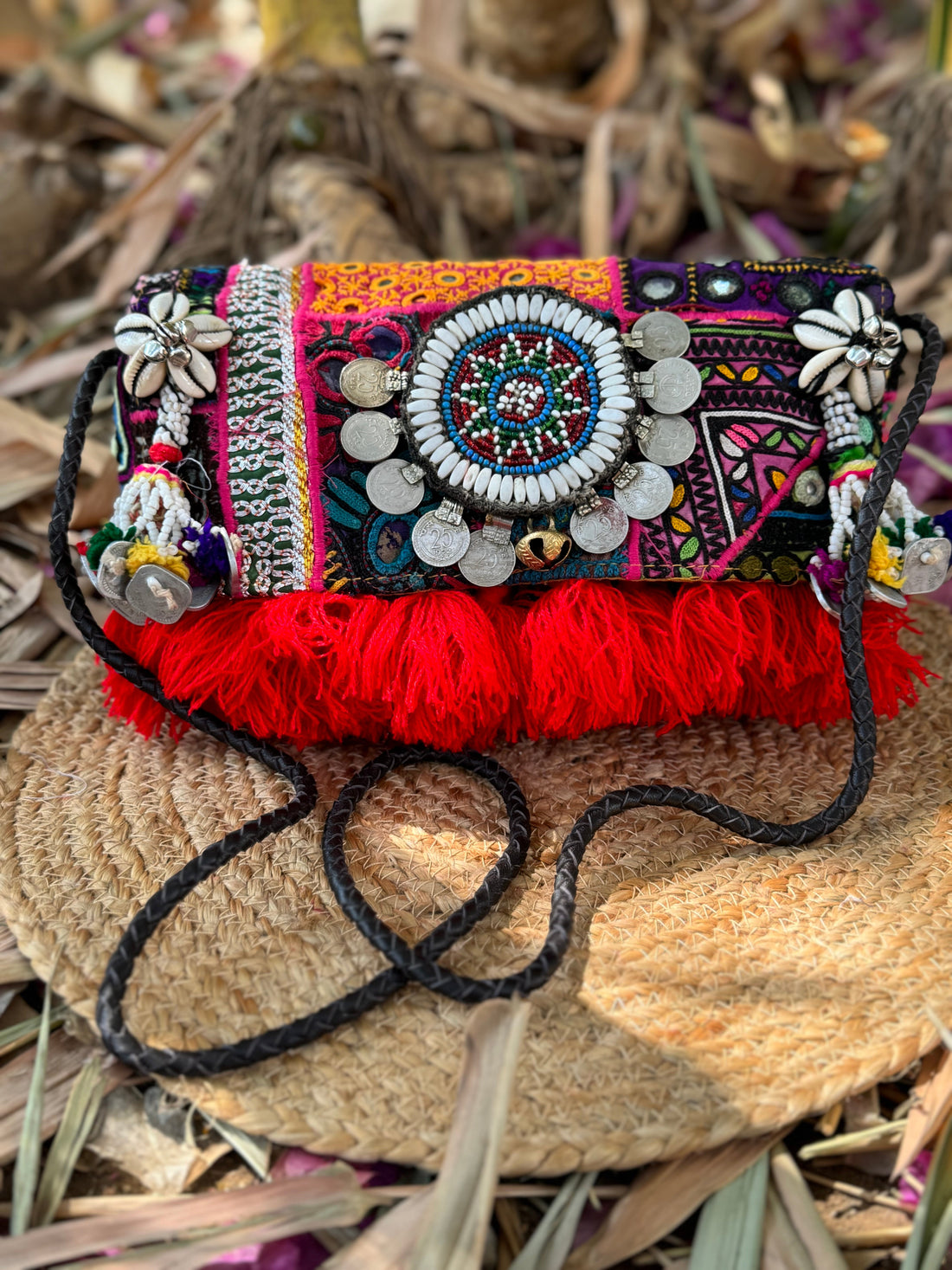 Ethically made with love, this Indian bohemian bag is made with Embroidery fabric patches is...