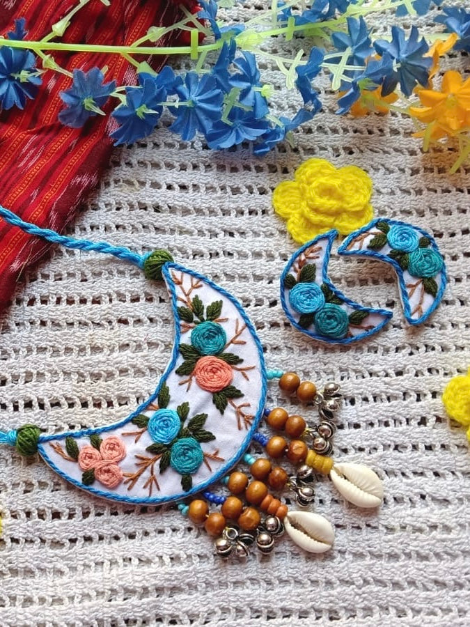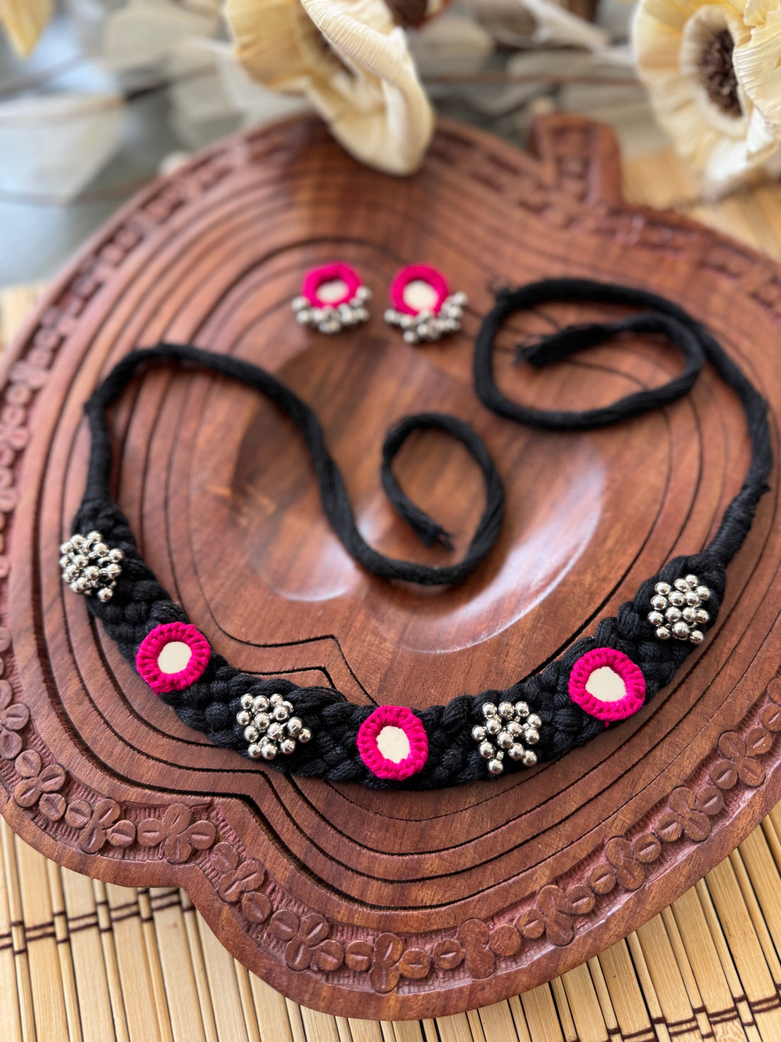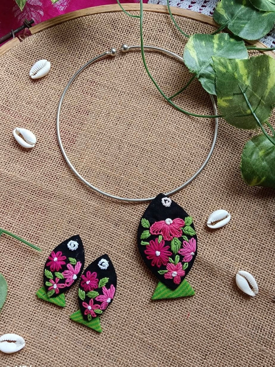 Dhyana Mirrorwork Fabric Hasli + Earrings Set
