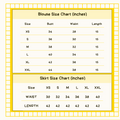 | Size | Blouse Bust ( In ) | Blouse Length ( In ) | skirt waist ( In ) | skirt Length ( In ) |