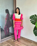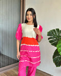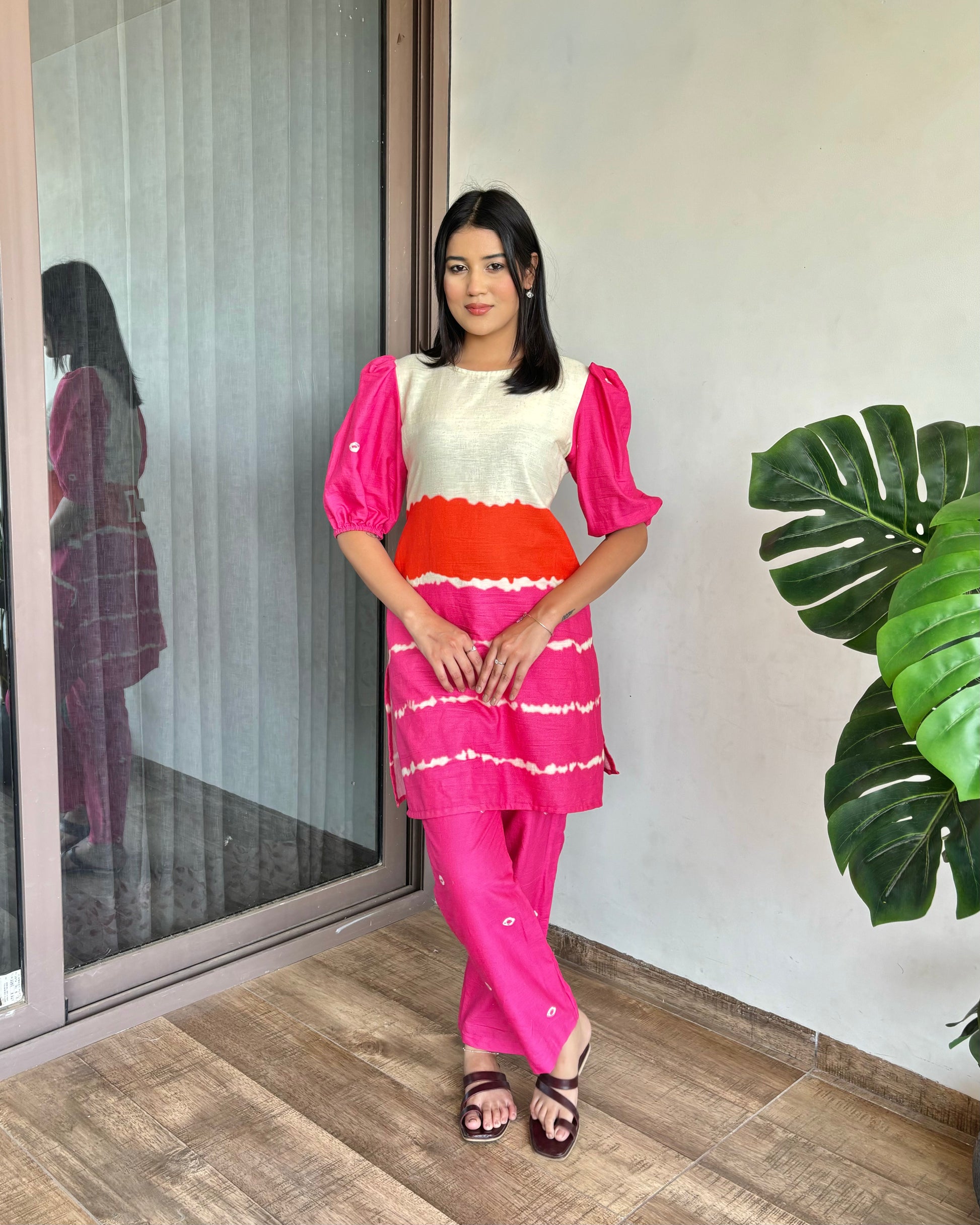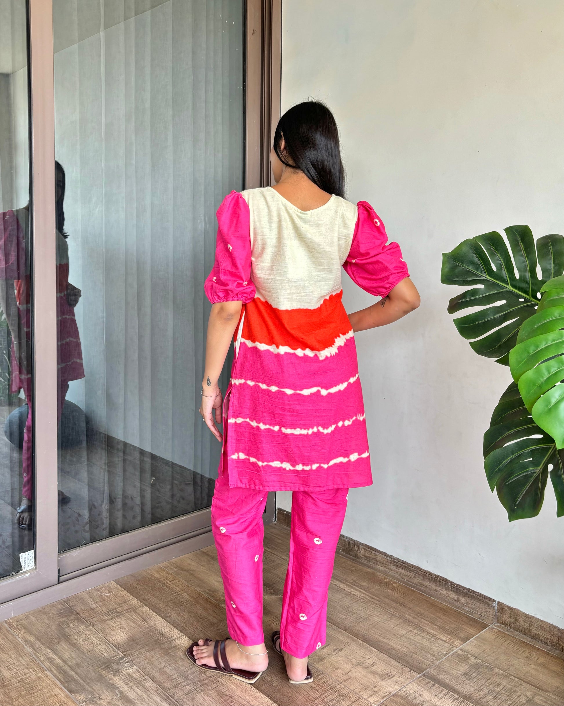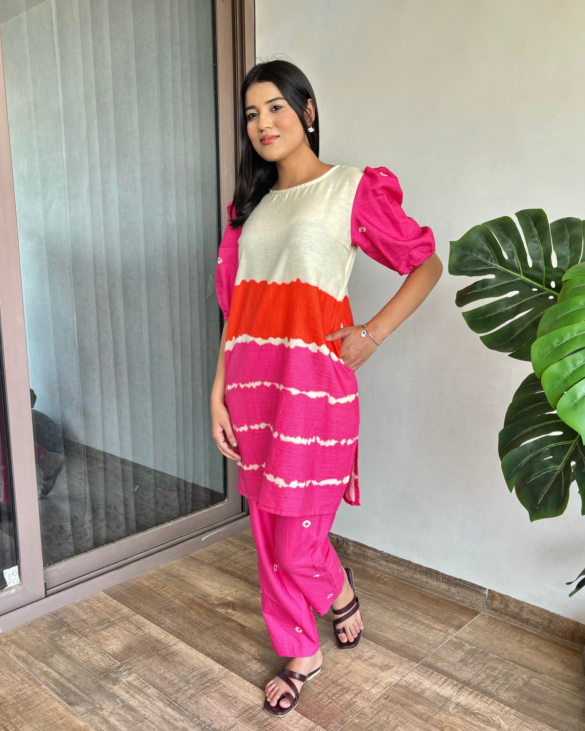 Rooted in tradition, refined for today – this Leheriya Bandhani cotton cord set brings together soft textures and subtle prints for an understated ethnic charm. Perfect for slow days, sunlit strolls, and quiet celebrations.