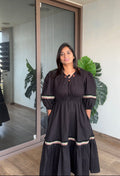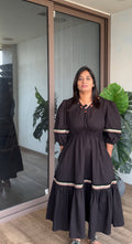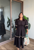 Step into effortless elegance with this black handcrafted ethnic dress designed with a perfect blend of simplicity and charm. The soft fabric drapes beautifully, offering all-day comfort while maintaining a refined, polished look.