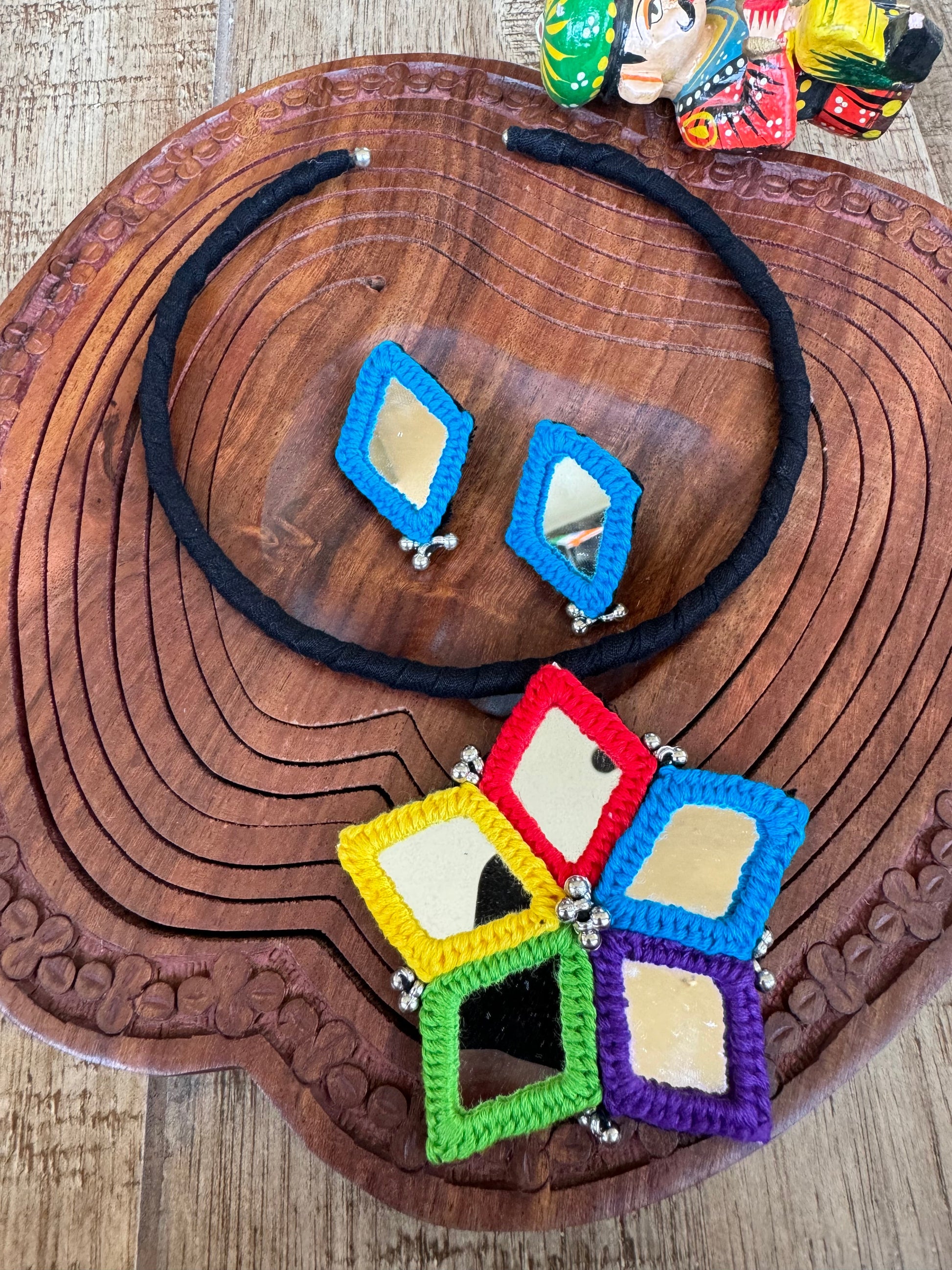 Chandra Mirrorwork Fabric Hasli + Earrings Set