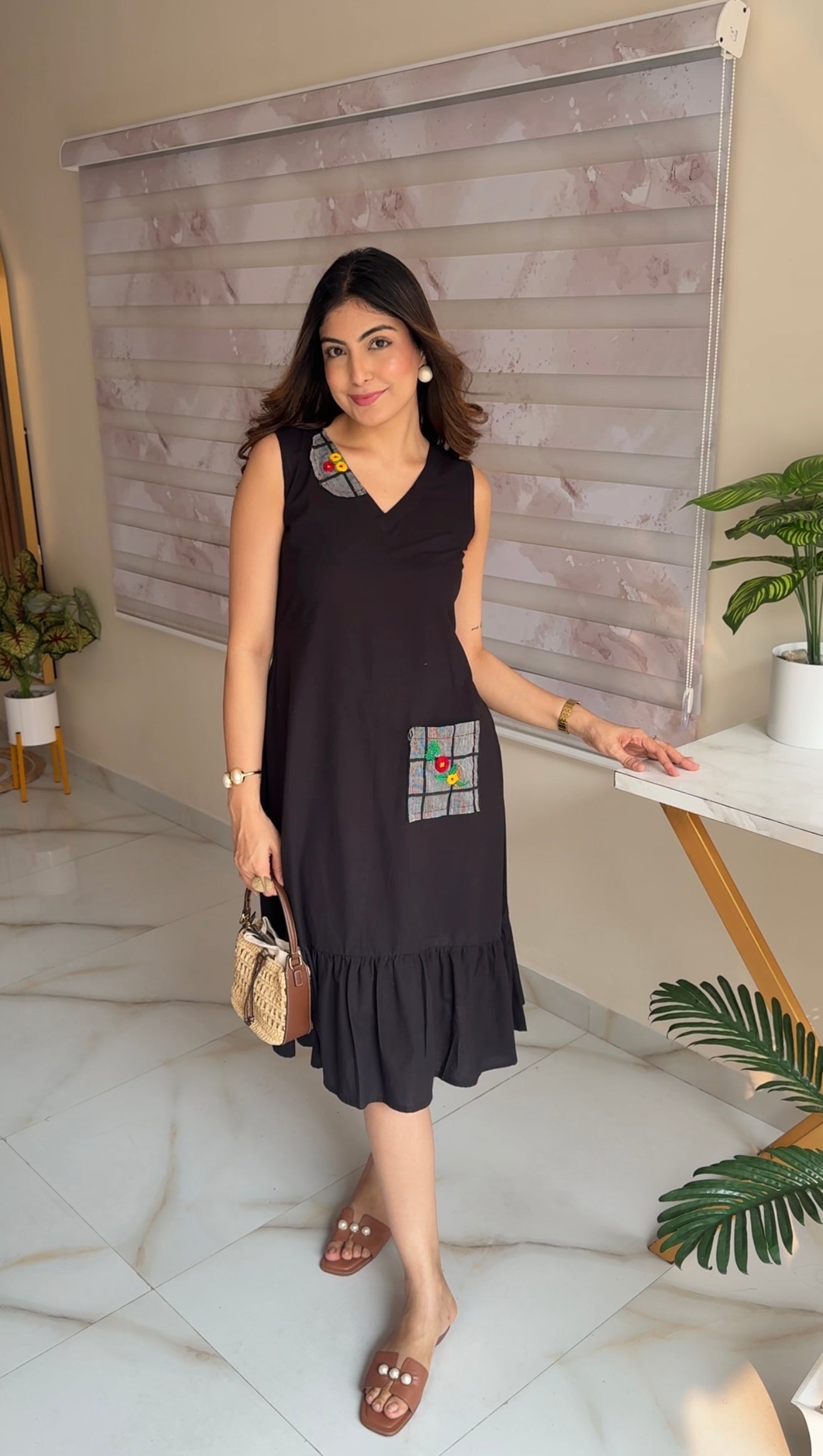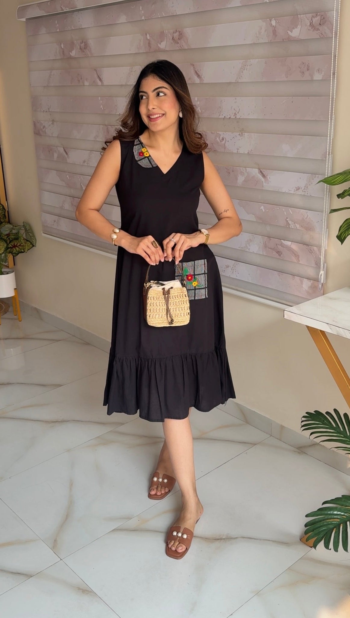 Chic and timeless, this black midi dress brings effortless elegance to any occasion. A versatile black midi dress designed for both casual charm and evening sophistication