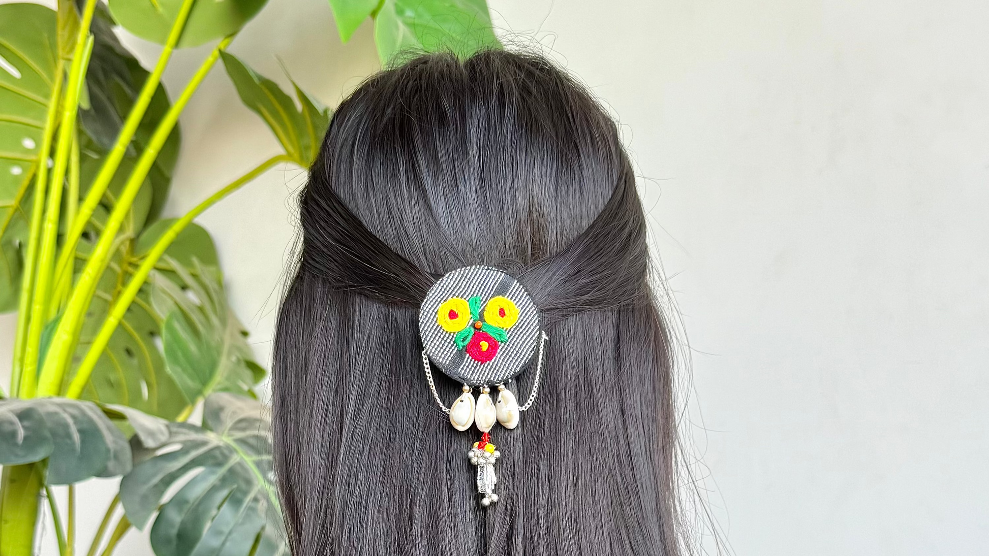 Elegantly handcrafted with embroidered fabric, delicate chains, and cowrie shells — a perfect blend of tradition and modern boho charm