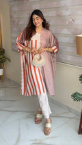 Embrace laid-back elegance with this kaftan-style set in soothing cream, brown, and orange stripe tones. Made from breathable cotton slub fabric, it’s perfect for regular wear. The relaxed fit ensures all-day comfort with effortless style.
