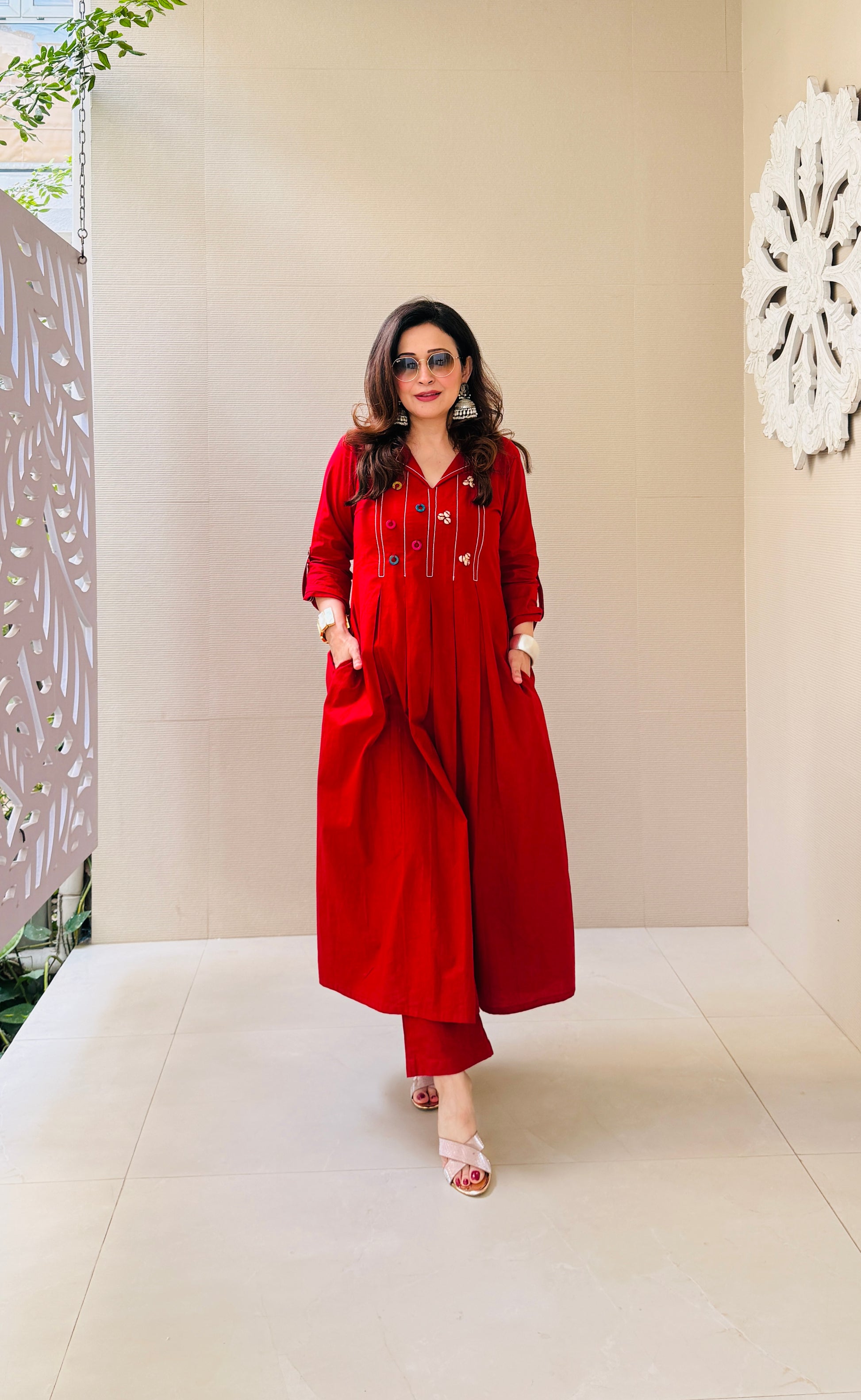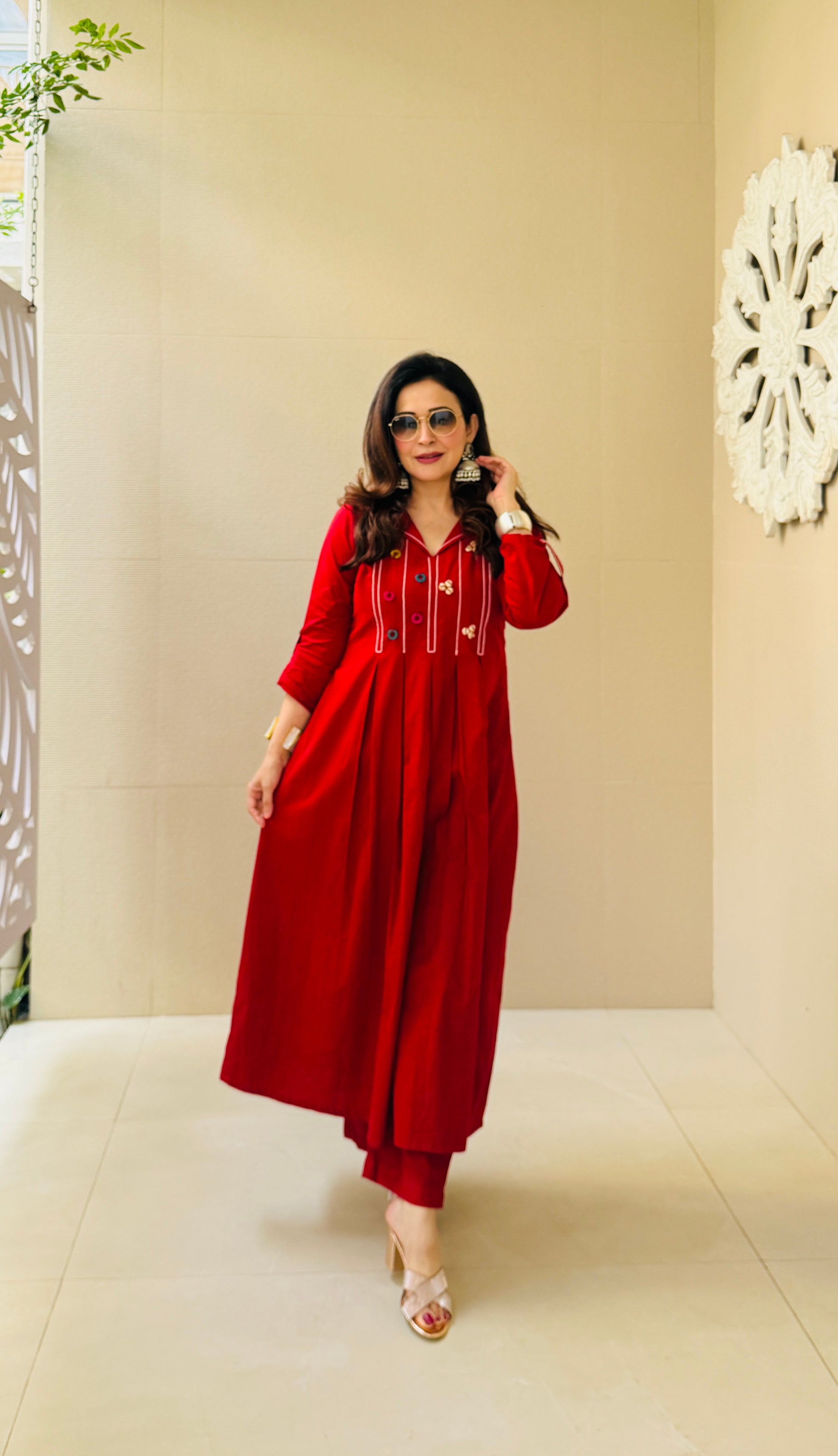 Elevate your everyday elegance with this graceful deep wine cord set, designed for the modern woman who loves comfort with charm. Crafted in a rich maroon hue, this ensemble beautifully blends simplicity with artistic detailing.