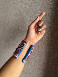 Introducing our exquisite "Fabric Handcuff" – the epitome of bohemian elegance. Handcrafted with meticulous care, these handcuffs are adorned with mesmerizing mirrorwork and hand-sewn accessories, creating a dazzling fusion of tradition and trend.