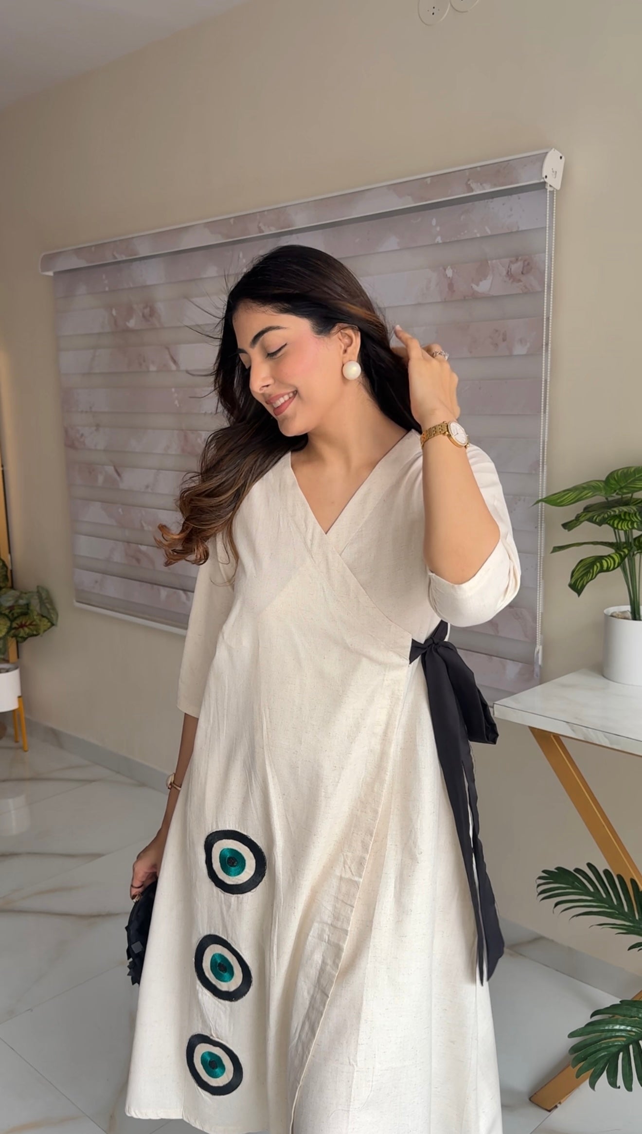 Striking wrap cord set featuring digital evil eye patchwork – a bold fusion of tradition and trend, designed to protect and impress.