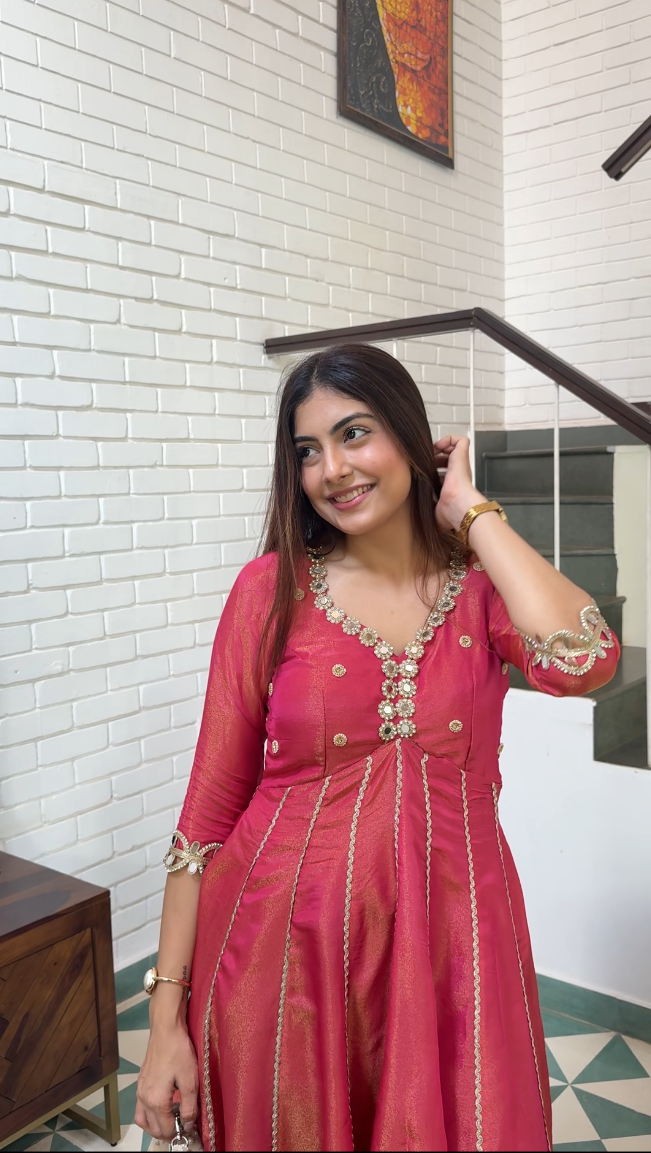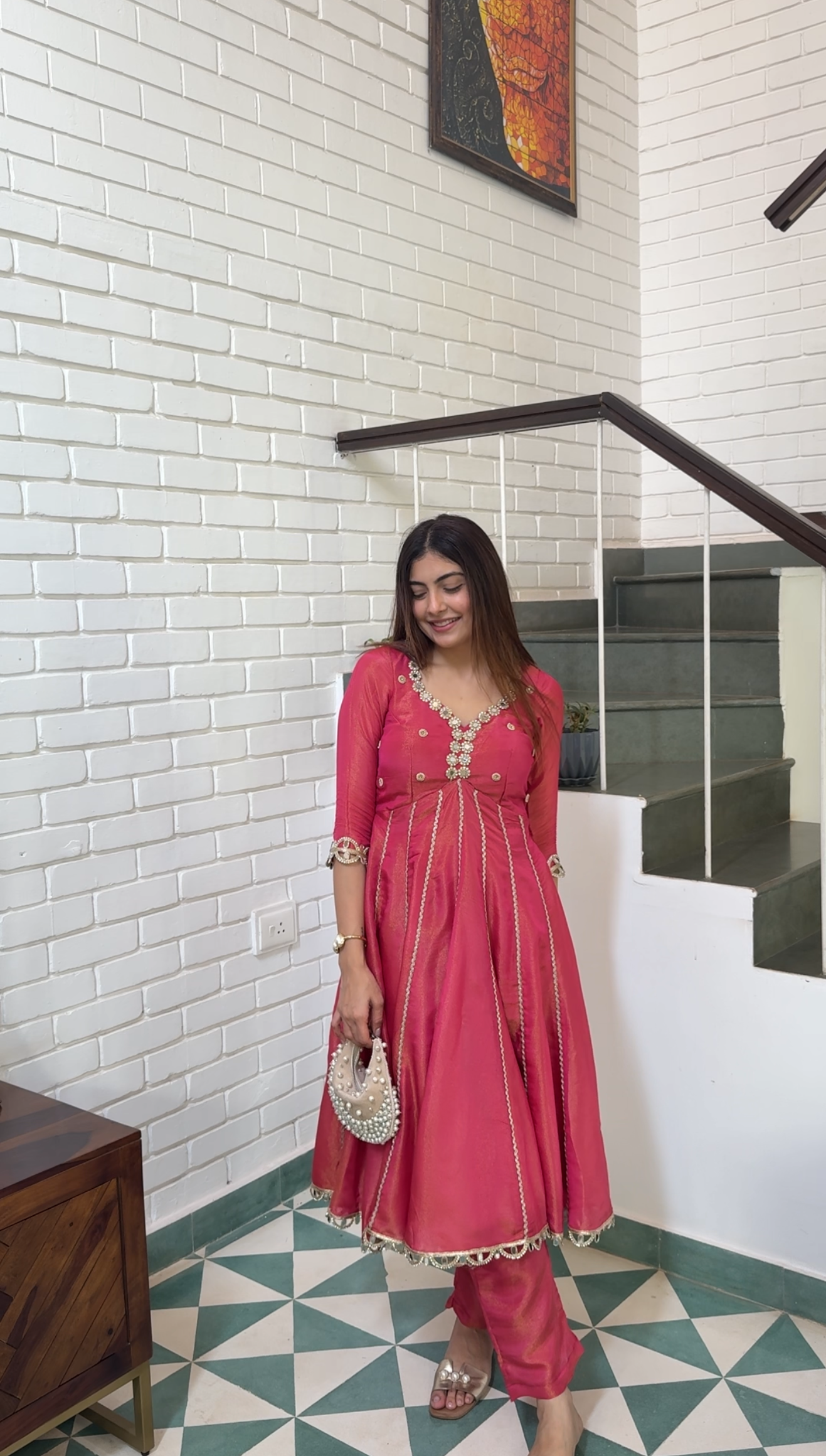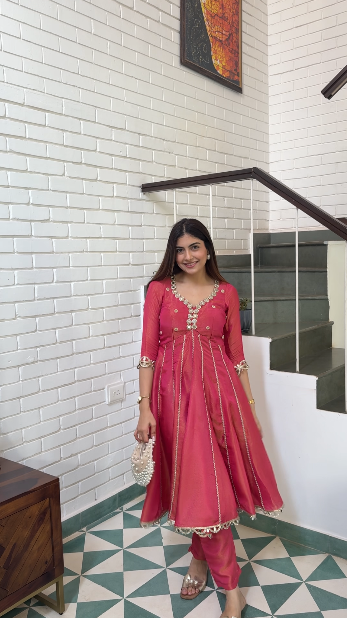 Grace meets timeless elegance in this stunning Anarkali Set with Matching Pants, thoughtfully designed for festive and special occasions. Crafted in a rich, vibrant hue, the Anarkali features a beautifully flowing flare that creates a regal silhouette with every movement.
