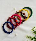 Vibrant handcrafted bangles with mirror and ghughroo detailing. Statement festive bangles for Wedding, Festival, and special occasions.