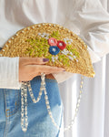 Add a touch of nature to your accessories with our eco-friendly and unique jute bag. Handcrafted with care, this half-moon clutch features intricate hand embroidery with wool and embellished beads, making it perfect for any occasion. Whether it's a weekend outing with friends or a special event, this stylish accessory is sure to elevate your look.
