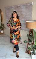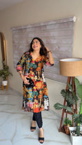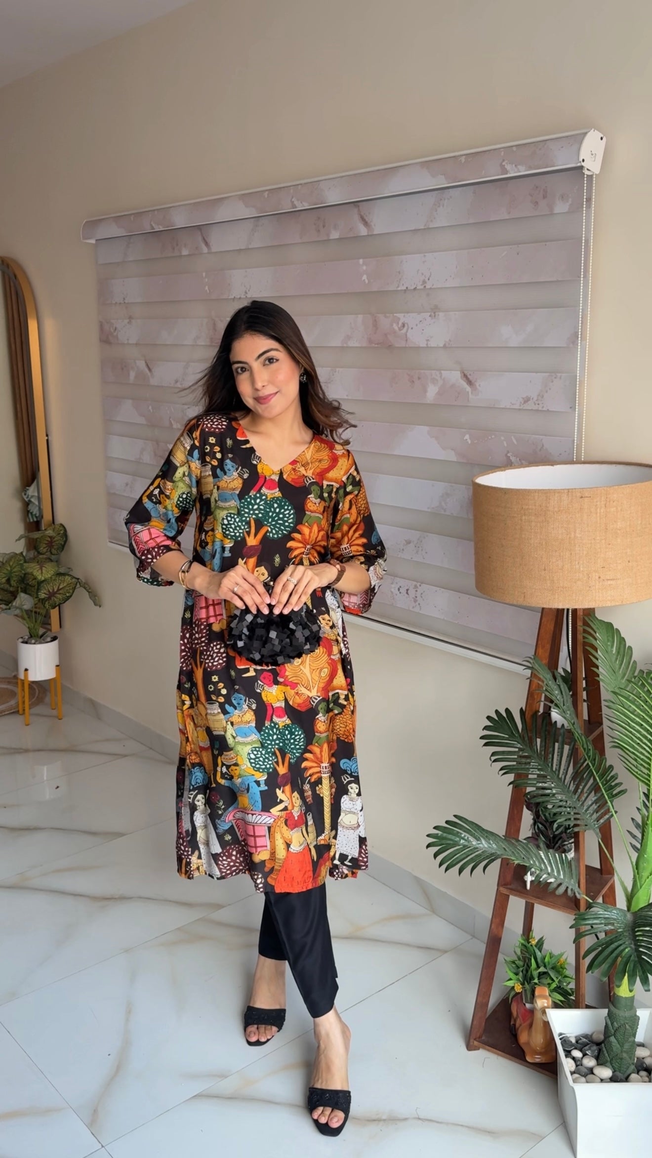 Step into refined style with this black pure muslin cord-set featuring elegant Kalamkari digital print. Crafted from lightweight, breathable fabric, it’s perfect for both office wear and casual brunches. The rich traditional design adds a touch of culture to your contemporary wardrobe.