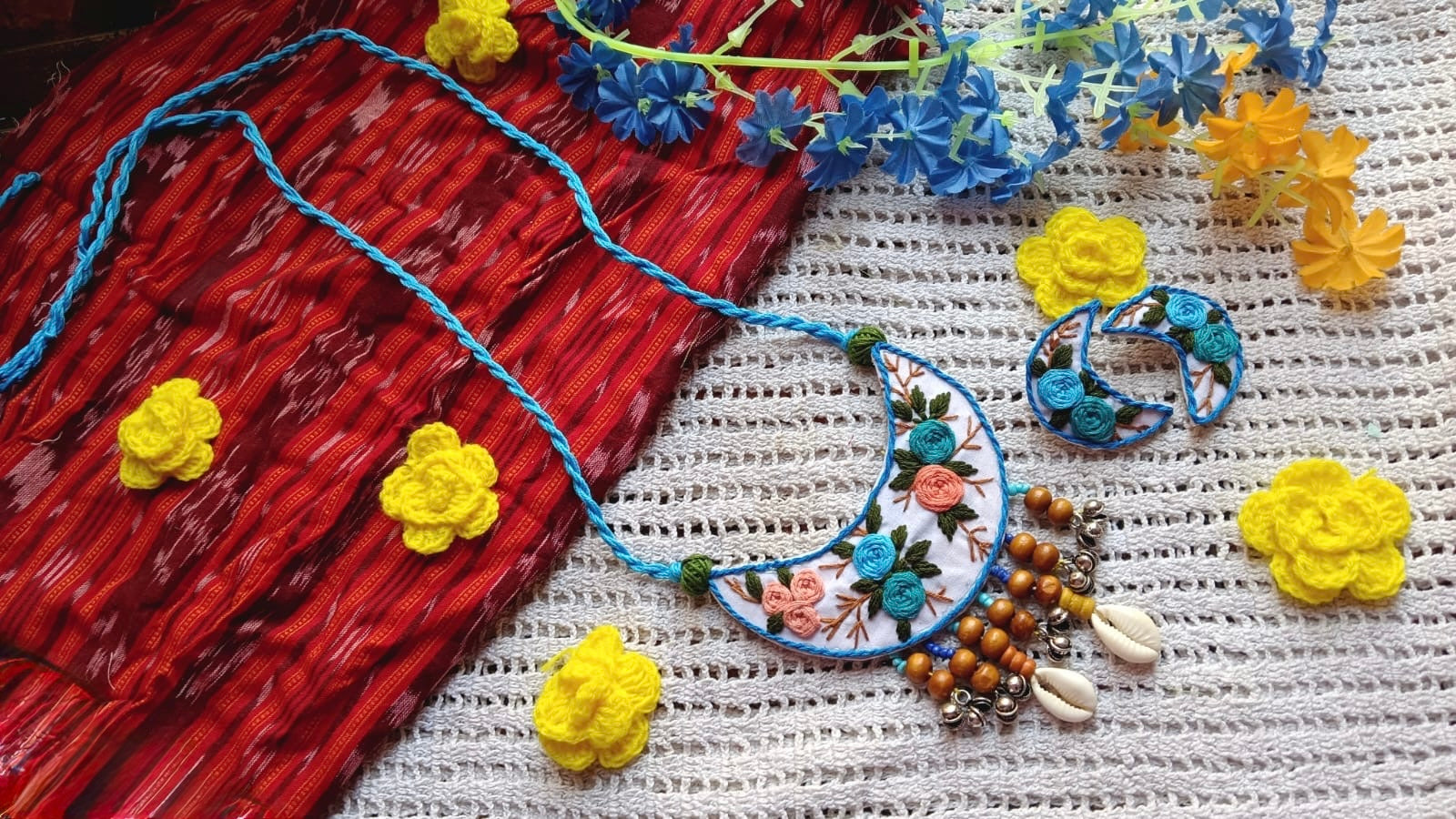 Look like a magnificent diva with this lovely multi-coloured mirrorwork necklace set by DESIMORNI. Crafted with the finest material, this necklace is sure to solidify your identity as a style icon. Team it up with a kurta set and embellished flats for a fashionable look.