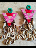 Handcrafted triangular style earrings put together with a Fabric- mirror work combinations for that perfect statement look.