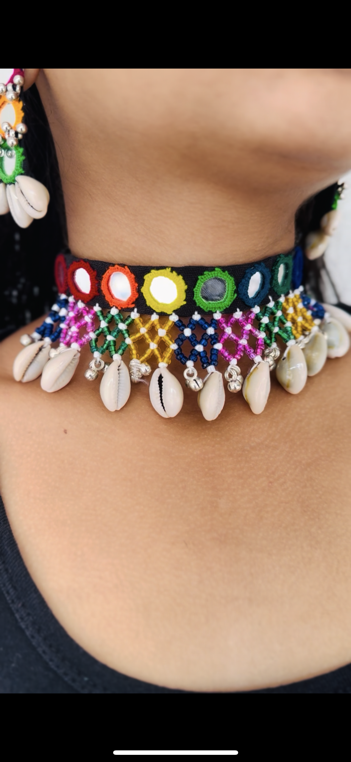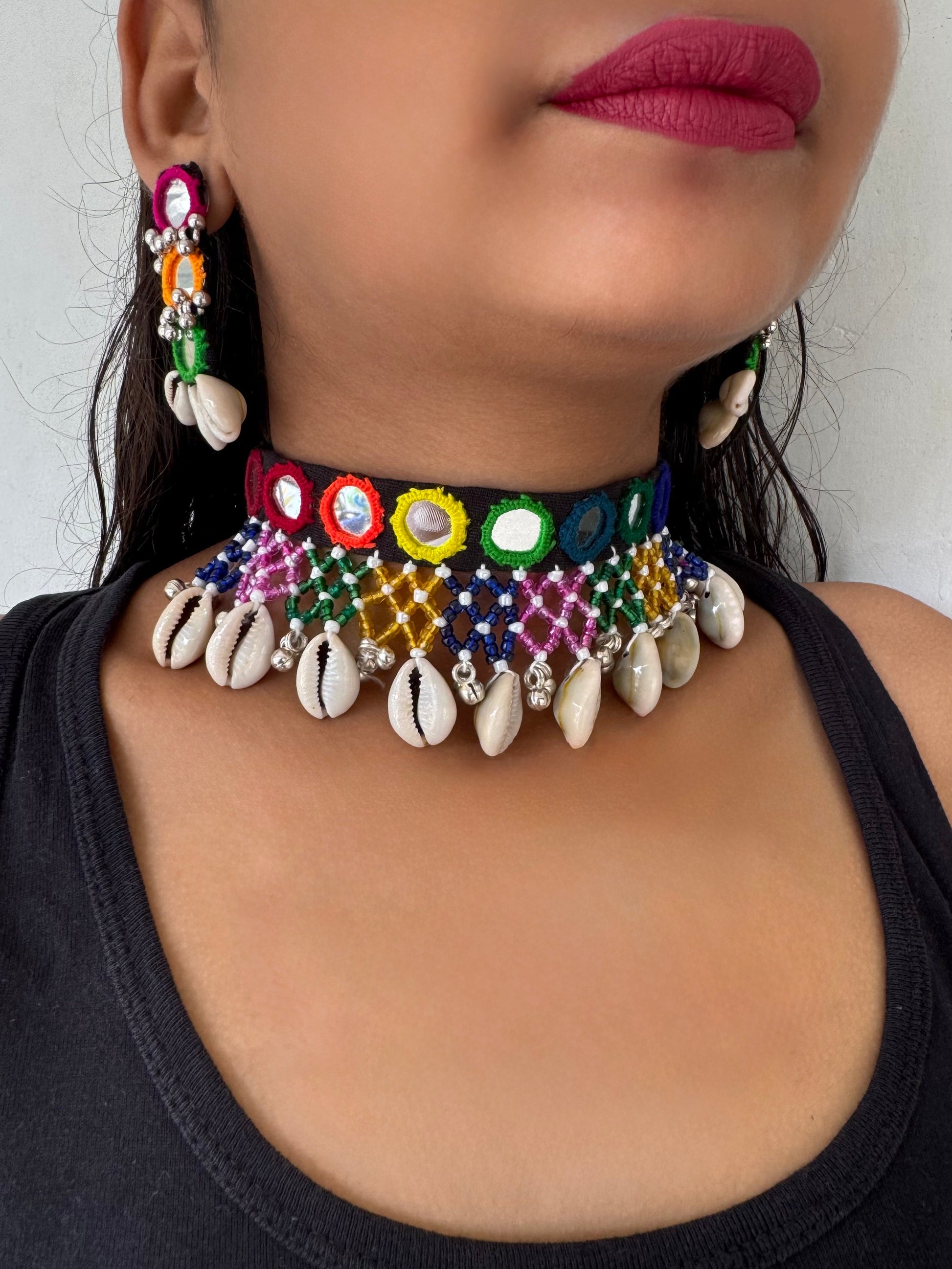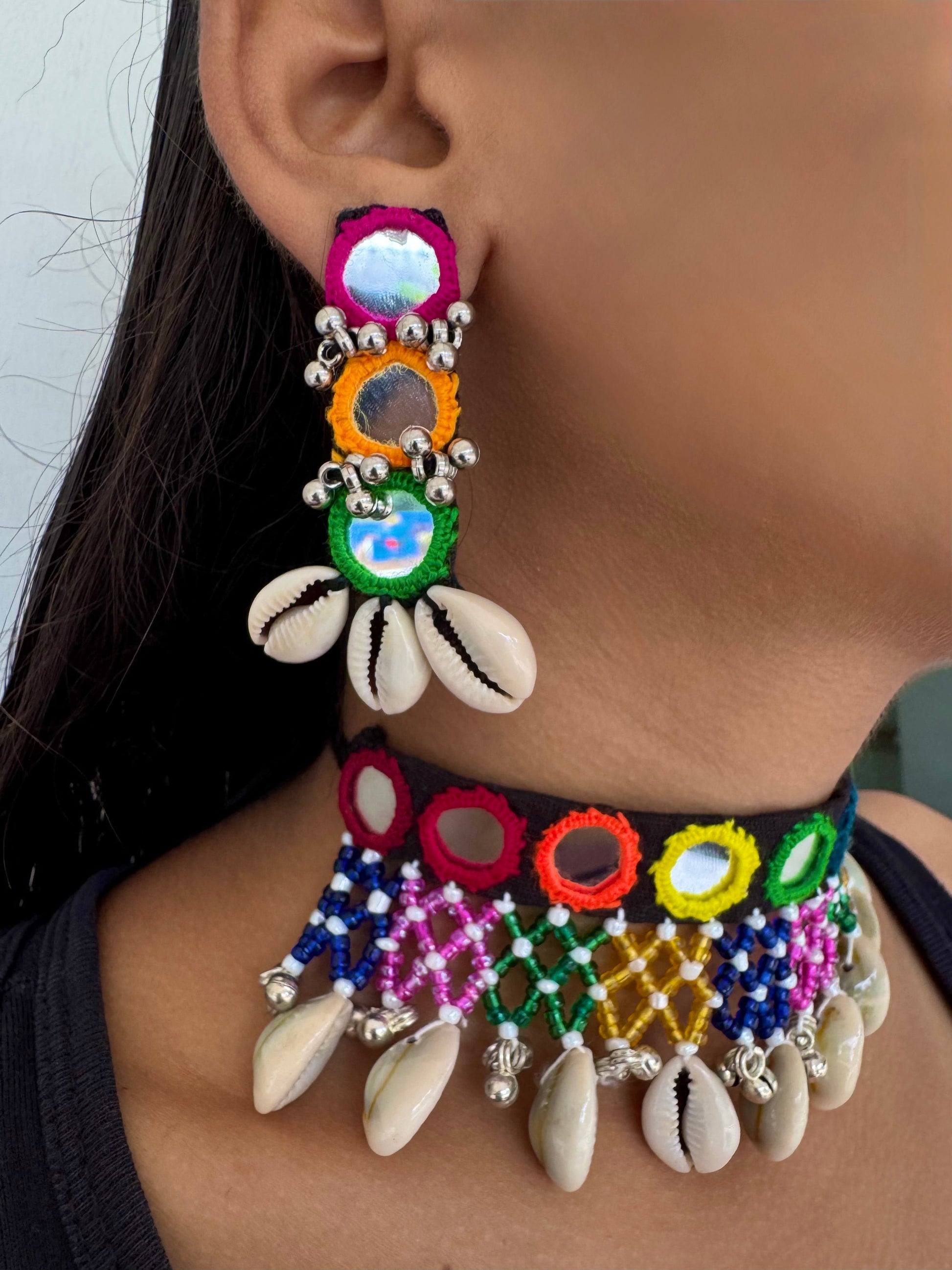 Meinu Mirrorwork Choker + Earrings | Necklace Combo