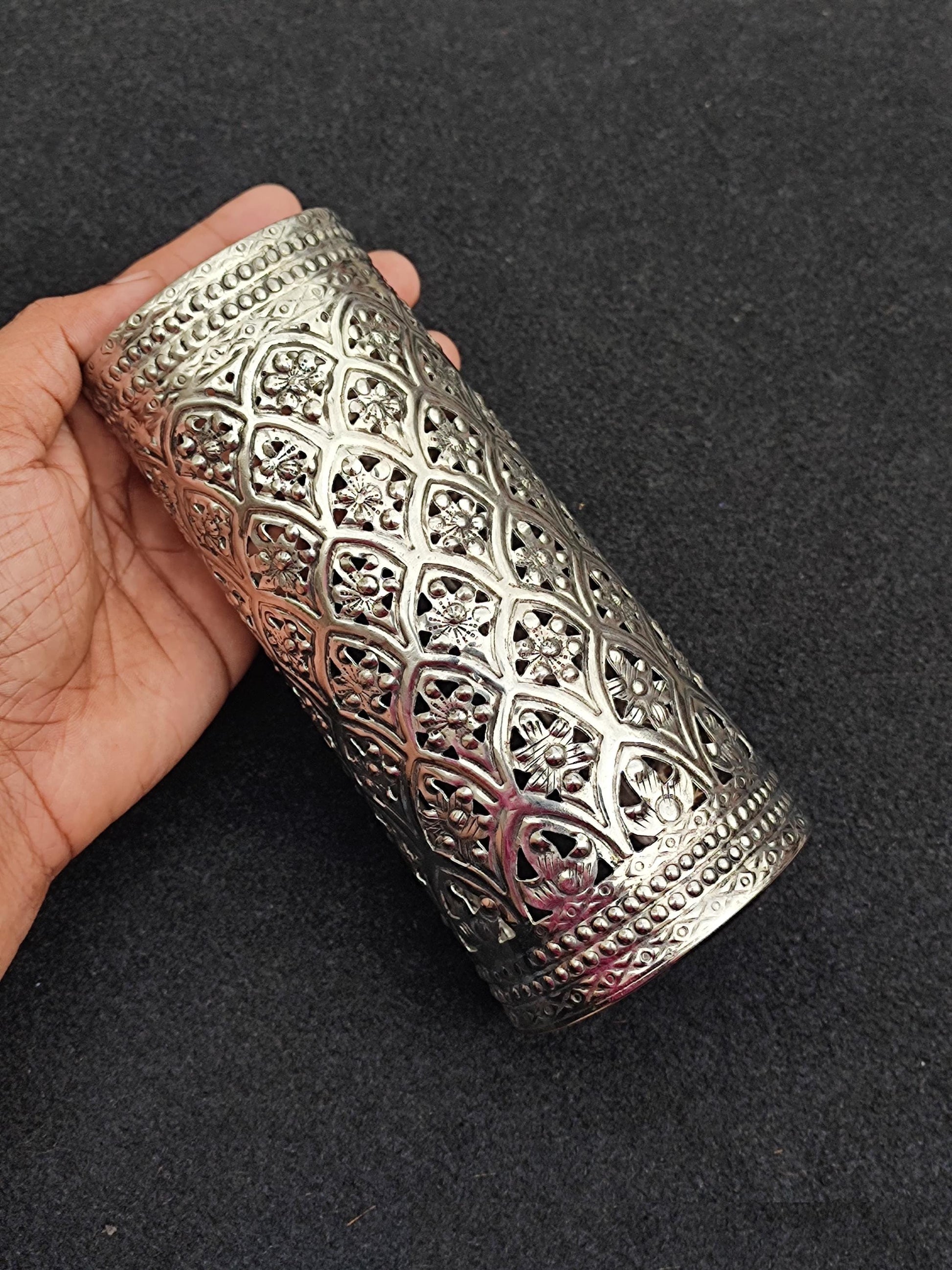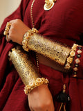 Delicate and trendy is how we would describe this bracelet cuff. It is crafted in oxidised featuring filigree flower & leaf motifs that add its delicate touch to the look and is truly a jewelry delight. This bracelet cuff is stylish and impressive and will justify your desi look as well as your Kurta and denim casual look.