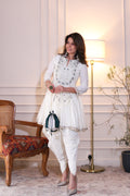 Radiate timeless elegance with this stunning ivory short kurti and dhoti pant set, crafted for women who love a blend of traditional artistry and contemporary charm. The outfit features a beautifully embroidered kurti adorned with intricate mirror work, delicate thread detailing, and soft tassels that add graceful movement with every step. The matching potli bag completes the ensemble with a touch of playful elegance.