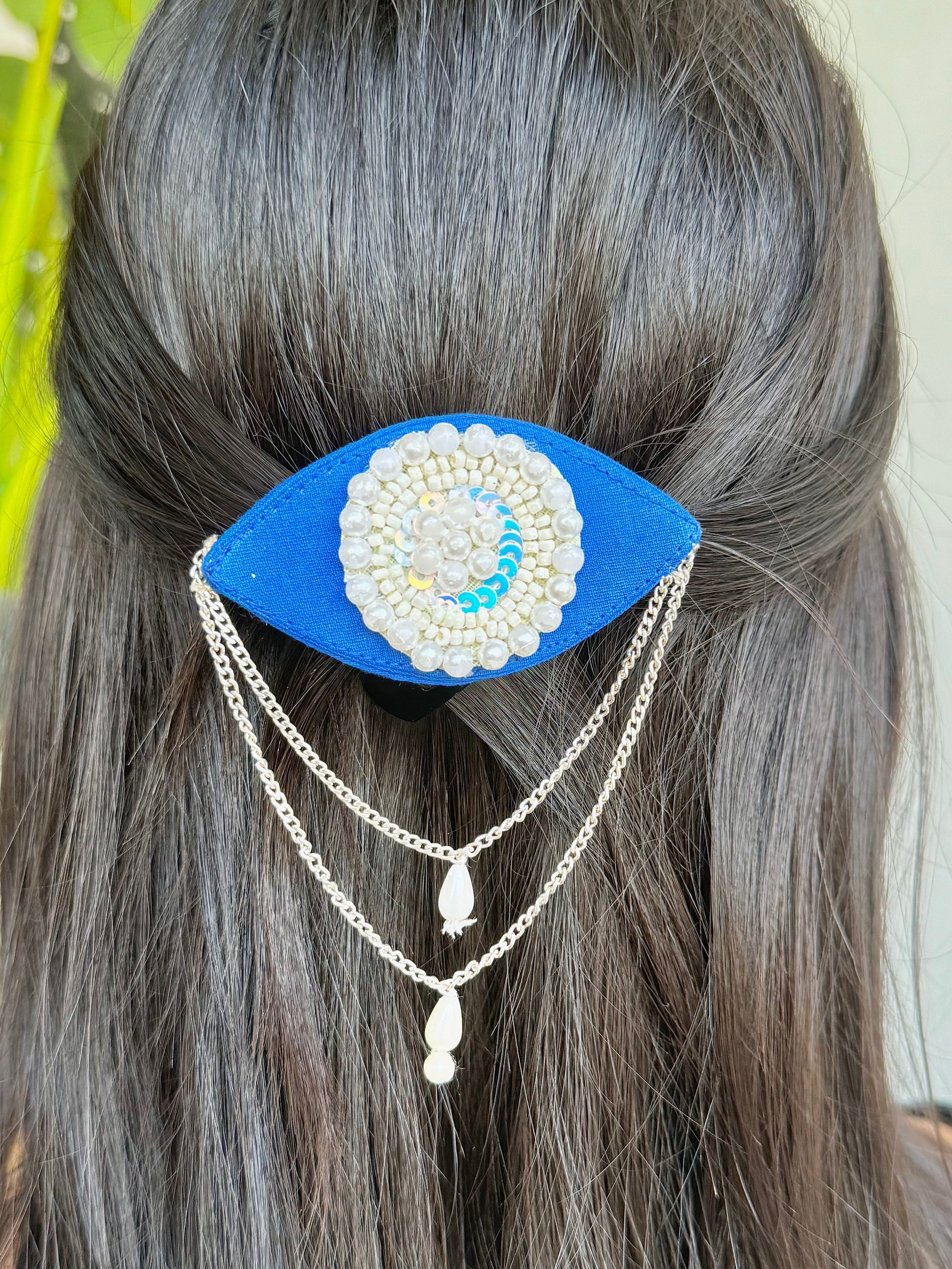 Handcrafted hair accessories adorned with delicate pearlwork, shimmering sequins, and elegant chain details — perfect for adding a touch of glam to any occasion.