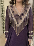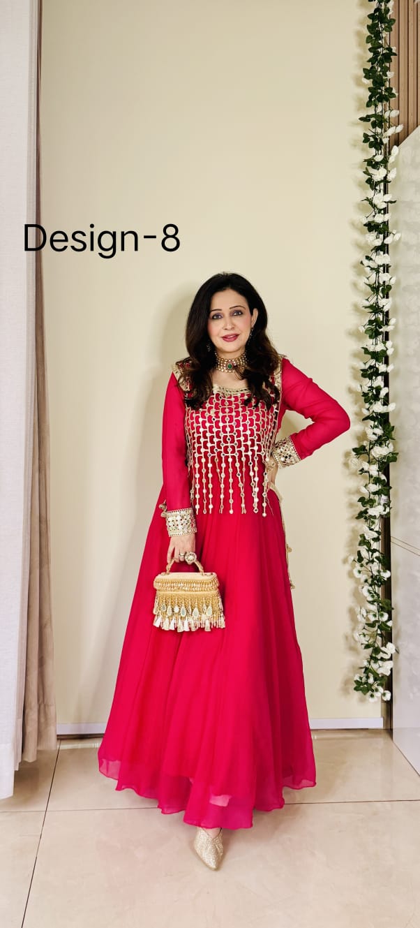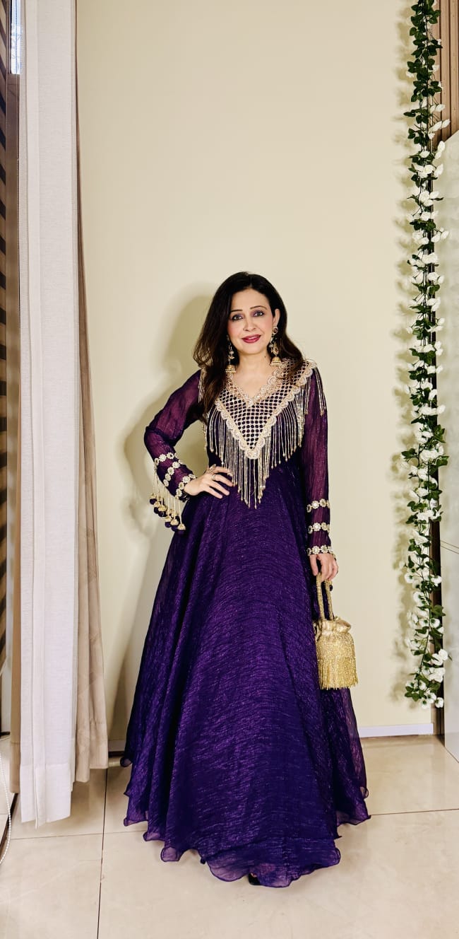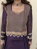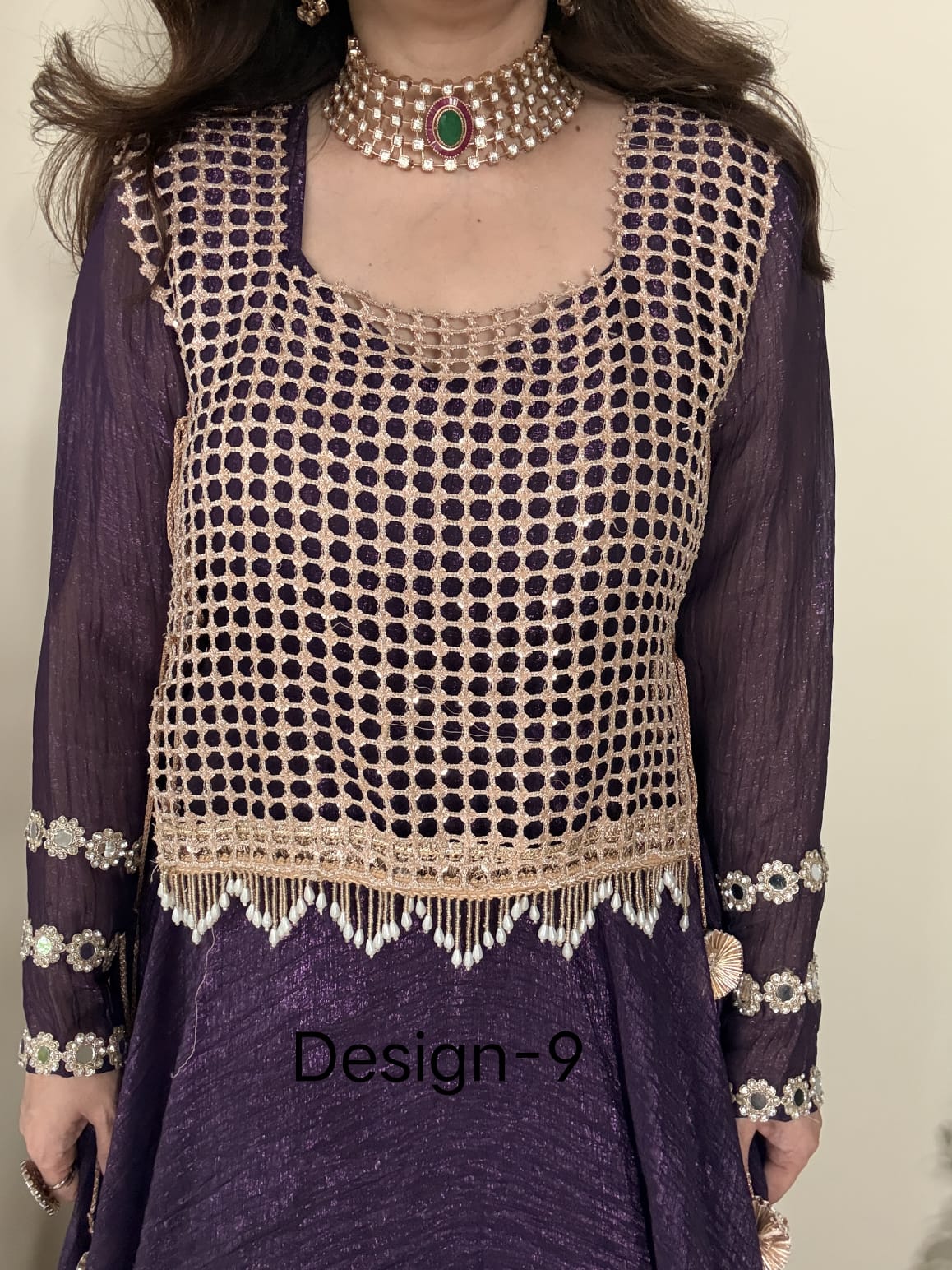 The open lattice design offers a modern, stylish look while maintaining a traditional charm. Long, elegant golden chain tassels accentuate the hemline, adding movement and a festive touch to every step you take.